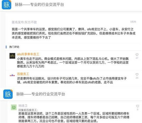 看似無限風光的ofo,背后似乎隱憂重重。繼創(chuàng)始團隊被資本架空的消息傳出之后,ofo內部貪腐的消息也甚囂塵上。近日,實名社交平臺脈脈上,有ofo前員工爆料稱:這個公司從高層到基層,貪腐現象嚴重。