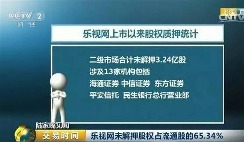 除此之外,涉及樂視網(wǎng)二級市場股權質(zhì)押的機構,合計未解質(zhì)押數(shù)量一共3.24億股,包括11家券商,分別是海通證券、中信證券、東方證券等;1家信托,即平安信托,還有1家銀行,民生銀行總行營業(yè)部。