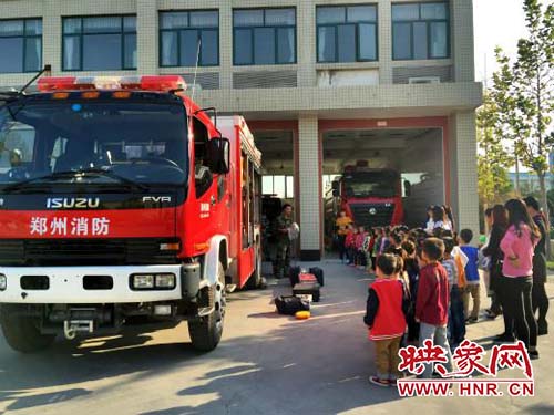 在老師和消防隊(duì)員的帶領(lǐng)下,孩子們有秩序地參觀。首先參觀了一樓車庫,孩子們被消防車以及車上的先進(jìn)裝備深深吸引,消防員叔叔耐心細(xì)致地為孩子們講解消防車上的小秘密:高壓水槍、防毒面罩、氧氣瓶、急救箱、云梯、泡沫噴射槍、定位器、呼救器等消防裝備,使孩子們開了眼界。消防隊(duì)員還用淺顯的語言向孩子們介紹了消防常識:火災(zāi)的危害、火災(zāi)的預(yù)防、火災(zāi)發(fā)生時(shí)的逃生自救、消防器械的使用、消防服的穿戴等等。接著孩子們參觀了二樓的消防員宿舍、圖書室、會議室、體育活動室等,更深入地了解了消防員的學(xué)習(xí)生活,更加走近消防員。最后,消防員為孩子們帶來了精彩的警犬搜救表演,孩子們興高采烈,不約而同為消防員叔叔鼓掌叫好!