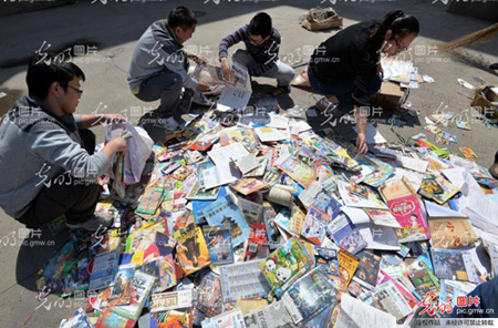 日前,河北省邯鄲市“掃黃打非”領(lǐng)導(dǎo)小組辦公室組織開(kāi)展“2016年邯鄲市侵權(quán)盜版及非法出版物集中銷(xiāo)毀”活動(dòng)。圖為工作人員現(xiàn)場(chǎng)銷(xiāo)毀侵權(quán)盜版及非法出版物。郝群英攝/光明圖片