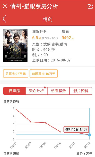 《情劍》預(yù)計(jì)票房8000萬最終22萬