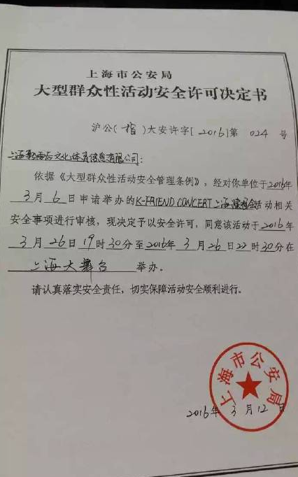 3月26日,大批EXO粉絲網(wǎng)上爆料,當(dāng)晚在上海體育館舉行的“2016 K-FRIENDS CONCERT with EXO”演唱會(huì),開(kāi)場(chǎng)后EXO僅唱5首歌就宣告退場(chǎng),現(xiàn)場(chǎng)廣播播放演唱會(huì)結(jié)束的消息后,粉絲們集體震怒,高喊退票。