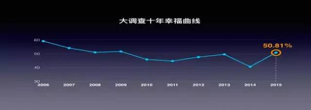 幸福感“V”型反轉(zhuǎn),超半數(shù)中國(guó)居民在2015年感覺(jué)生活幸福,達(dá)到五年來(lái)大調(diào)查發(fā)現(xiàn)居民幸福感近五年來(lái)最高點(diǎn)。