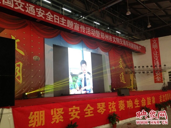 12月22日上午,12·2全國交通安全日主題宣傳活動暨鄭州市文明交通系列劇首映式在鄭州航空港區(qū)富士康科技園舉行。首映式將展示5部倡導(dǎo)文明交通的微電影,倡導(dǎo)交通參與者“摒棄交通陋習(xí),安全文明出行”,河南省文明交通形象大使,河南交通廣播主持人南方,河南交通廣播主持人王驍主持了首映式。