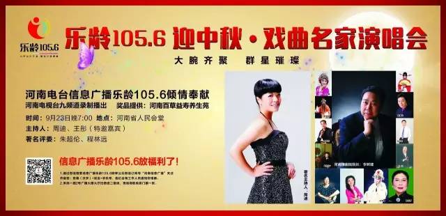 河南電臺信息廣播樂齡105.6傾情奉獻《樂齡1056迎中秋戲曲名家演唱會》將于9月23日晚19:00在河南省人民會堂激情開唱!