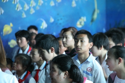 這批特殊孩子都是鄭州市二七區(qū)輔讀學(xué)校的在校學(xué)生,能夠在2012年六一兒童節(jié)來臨之際前往海洋館游玩,是大家多年以來的共同愿望。在三個(gè)多小時(shí)的時(shí)間里,信息廣播的編輯、記者、主持人領(lǐng)著智障、自閉癥兒童參觀了各個(gè)館舍。海豚館表演結(jié)束后,工作人員破例讓部分自閉癥孩子近距離與海豚接觸。由于海豚能發(fā)出多種波長(zhǎng)的高頻超聲波(200至350千赫),對(duì)人的中樞神經(jīng)有激活作用,對(duì)自閉癥患兒有一定療效,孩子們臉上都露出燦爛的笑容,很多孩子都流下了激動(dòng)的淚水。