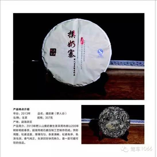 2013年,野人山摸奶寨生茶采用布朗山200年以上樹(shù)齡明前春茶,延續(xù)傳統(tǒng)石磨壓制工藝制作而成。餅形周整,松緊適度,厚薄均勻,條索清晰,松緊有序,色澤烏潤(rùn),香氣純正,生津回甘快而持久是一款可藏可飲的佳品。