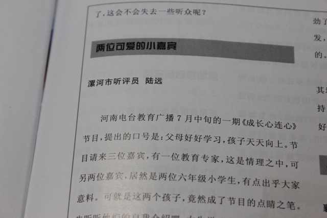 這期談教育的節(jié)目之所以吸引人,兩位小學(xué)生增色不少。聽了這期節(jié)目,大家還能感覺出來,女主持人雖然年輕,卻非常用心,非常給力,非常真誠,對辦好節(jié)目,實(shí)在是功不可沒。