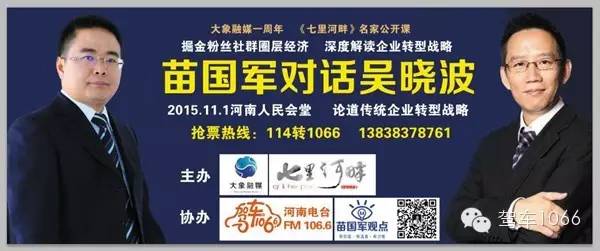 對(duì)話吳曉波,作為關(guān)注社會(huì),運(yùn)籌帷幄的社會(huì)精英怎會(huì)不心動(dòng)?你想提問(wèn)嗎?在微信平臺(tái)“駕車1066”留下您的問(wèn)題,苗國(guó)軍將把您的精彩問(wèn)題帶到現(xiàn)場(chǎng)。