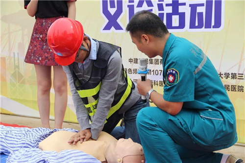 醫(yī)生們一邊操作,一邊講解,工人們有不明白的,還可以現(xiàn)場提問。幾乎每一位認真學習的建筑工人都想一試身手,醫(yī)生則在一旁一對一指導。