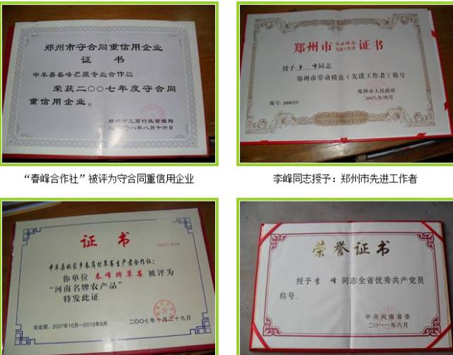 目前合作社有生產(chǎn)、銷售和綜合服務(wù)三個組。2006年合作社的產(chǎn)品獲得了無公害認(rèn)證,春峰牌草莓2012年通過綠色食品基地和綠色食品認(rèn)證,也是河南省首家拿到草莓綠色食品證書的品牌。