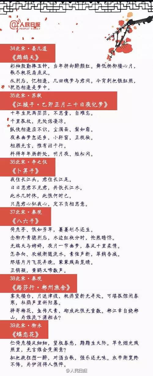 “愿得一心人,白頭不相離”,“從此無(wú)心愛(ài)良夜,任他明月下西樓”,“一川煙草,滿(mǎn)城風(fēng)絮,梅子黃時(shí)雨”……