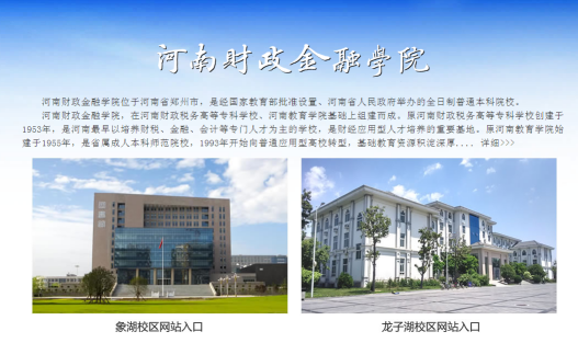 目前,河南財(cái)政金融學(xué)院共有兩個(gè)校區(qū),分別座落在鄭東新區(qū)的象湖、龍子湖畔,在校生近兩萬人,占地面積100.6萬平方米(1509畝),建筑面積58.69萬平方米。