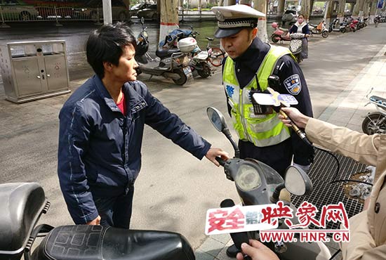 映象網(wǎng)快訊(記者 巫曉 文/圖)駕駛非機動車違法,民警不吵不罰款,而是讓違法者在手機上做一套交通安全知識答卷。近日,鄭州市交警治理非機動車違法出新招,取得了良好的效果。