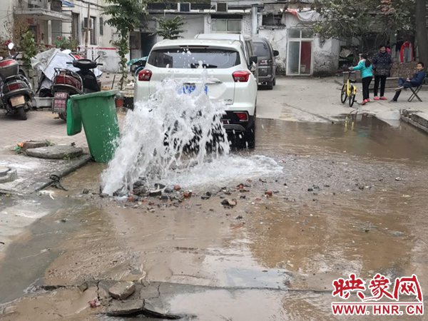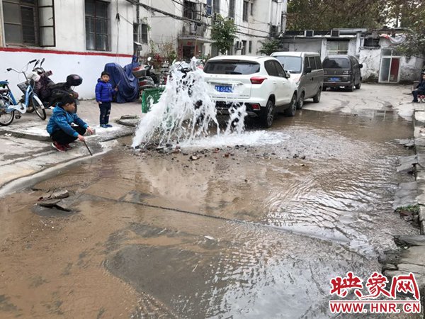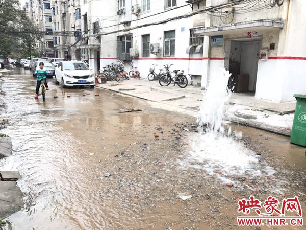 鄭州一小區(qū)自來水管爆裂 白白流水兩三個(gè)小時(shí)