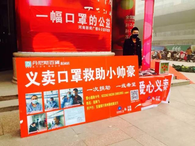 河南新聞廣播持續(xù)關(guān)注16歲白血病少年趙帥豪籌集50萬元移植費的進展。由我們和公益同盟一起發(fā)起的口罩義賣活動仍在進行中。在花園路丹尼斯義賣點,王女士帶著自己12歲的兒子柳義獻上了一份愛心。