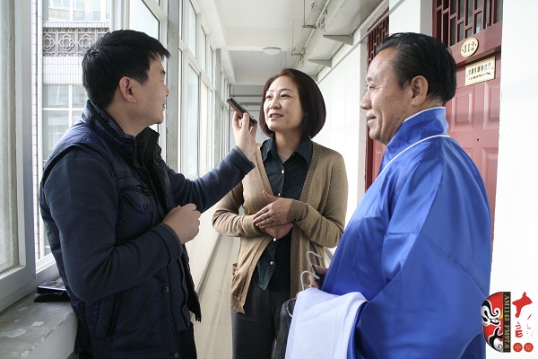 并采訪河南省越調劇團著名演員李娟(中)和票友