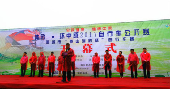 9月27日,以“全民健康,綠色中原”為宗旨的“體彩·環(huán)中原2017自行車公開賽--永城市泰山瑞豹杯自行車賽”在河南省永城市日月湖畔舉行。河南省自行車運(yùn)動(dòng)管理中心書記李健、永城市人大常委會(huì)副主任駱本京、永城市人民政府副市長(zhǎng)吳英杰、永城市教育體育局副局長(zhǎng)趙海濤等相關(guān)部門負(fù)責(zé)人以及來(lái)自國(guó)內(nèi)外600多名運(yùn)動(dòng)員和多家媒體參加了啟動(dòng)儀式,啟動(dòng)儀式由永城市政府辦公室副主任杜平主持。