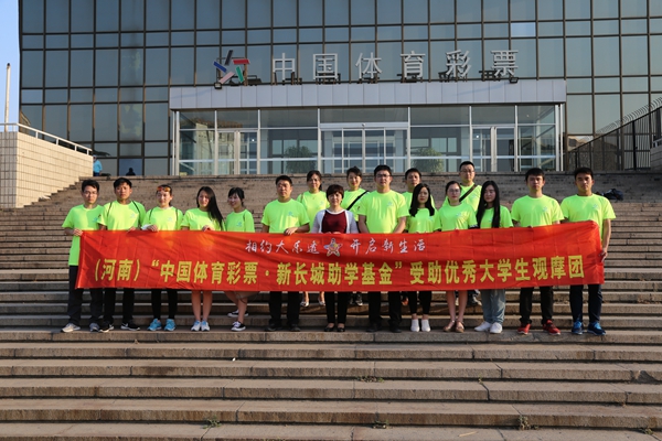 2017年,首批得到“中國體育彩票·新長城助學基金”資助的信陽師范學院2013級優(yōu)秀大學生畢業(yè)之際,河南省體育彩票管理中心還邀請其中的部分學生代表,在老師的帶領(lǐng)下到北京觀摩中國體育彩票現(xiàn)場開獎,在他們踏入社會進入工作崗位之前,開闊眼界并深入了解和見證中國體育彩票作為國家公益彩票的公益屬性和公信力。