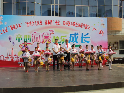 5月31日,二七區(qū) “星級美德少年”、“認星爭優(yōu)”活動優(yōu)秀學校、優(yōu)秀教師、優(yōu)秀家長、“十佳少先大隊”、“十佳少先隊干”、 “十佳少先隊輔導(dǎo)員”、“百佳少先隊員”頒獎儀式、蜜蜂張辦事處溫暖行暨慶“六一”活動在鄭州市二七區(qū)京廣路小學舉行。