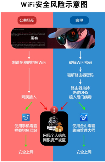 昨日,央視《消費主張》報道了人們?nèi)粘J褂玫臒o線網(wǎng)絡(luò)存在巨大的安全隱患。在節(jié)目中,央視聯(lián)合金山毒霸安全工程師在多個場景實際測驗顯示,火車站、咖啡館等公共場所的一些免費WIFI熱點有可能就是釣魚陷阱,而家里的路由器也可能被惡意攻擊者輕松攻破。網(wǎng)民在毫不知情的情況下,就可能面臨個人敏感信息遭盜取,上網(wǎng)如同“裸奔”,訪問釣魚網(wǎng)站,會直接造成經(jīng)濟(jì)損失。