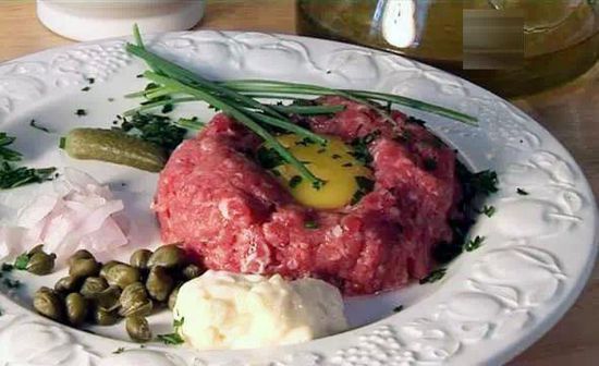 實際情況:純生牛肉末,配各種口味詭異的香料,再攪和上一個純生雞蛋。