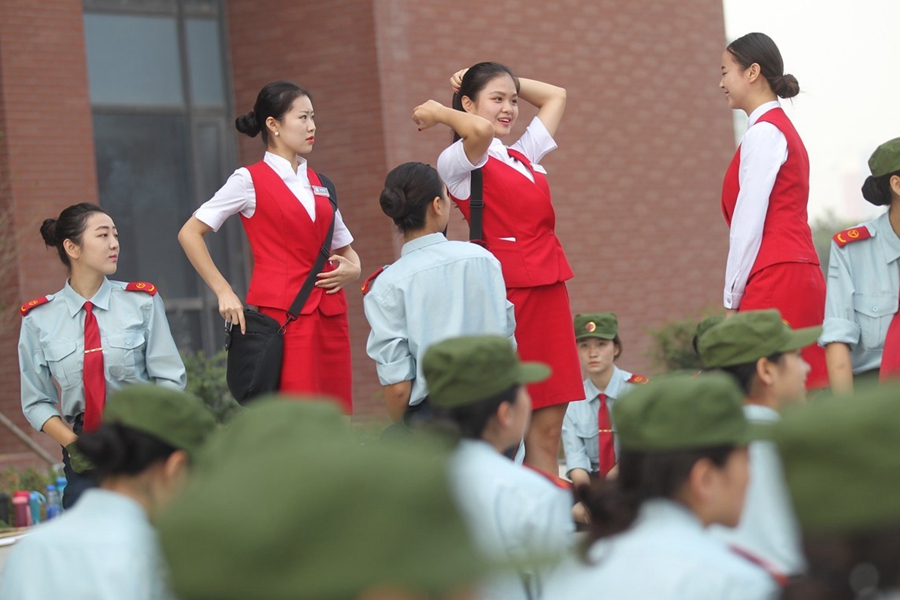 2015年9月17日,鄭州航院的“準空姐”們正在軍訓。