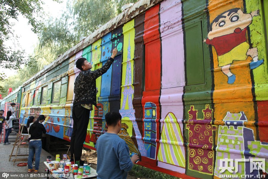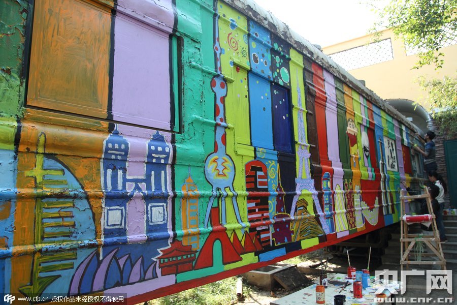 2015年10月10日,鄭州四禾美術(shù)中學(xué)充分發(fā)揮美術(shù)生的優(yōu)勢,對(duì)火車車身1進(jìn)行涂鴉改造,使火車宿舍看起來更加漂亮。