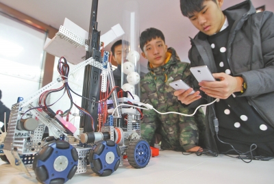 咱鄭州的學(xué)生“玩”機(jī)器人很有一手!11月23日~24日,2015世界青少年機(jī)器人邀請賽在北京舉行,鄭州二中8名高中生組成的隊(duì)伍“殺入”四強(qiáng),國內(nèi)排名第二,并榮獲最佳設(shè)計(jì)獎。昨日,記者見到了剛剛比賽歸來的學(xué)生們和他們設(shè)計(jì)的機(jī)器人。