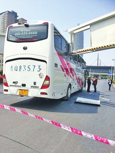 斷掉的限高桿直插大巴車內(nèi)