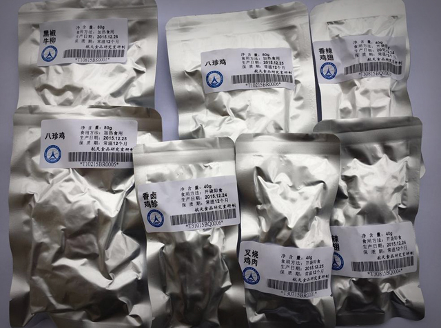 當(dāng)然,這些佳肴并非咱們常見的飯菜,記者了解到,這19種佳肴都是由河南永達集團負(fù)責(zé)研發(fā),今年4月份,該公司承接為神十一研發(fā)生產(chǎn)航天員食品的任務(wù),按照航天員中心要求,技術(shù)中心迅速組織技術(shù)力量,結(jié)合航天員在軌停留時間延長,需要豐富產(chǎn)品種類,以及太空環(huán)境條件的消化吸收、營養(yǎng)轉(zhuǎn)化等因素,開展技術(shù)攻關(guān)和工藝創(chuàng)新,新研發(fā)的航天員食品順利通過專家組評審,全部進入航天員食譜庫,12種產(chǎn)品成功入選“神十一”航天員食品。該公司技術(shù)中心主任徐清芬告訴記者,“以前我們提供的神八、神九、神十航天員食品主要是菜肴類產(chǎn)品,這次神十一我們有原有的菜肴系列7種產(chǎn)品,同時新增了主食系列、休閑系列12種產(chǎn)品,深受航天員喜歡!”