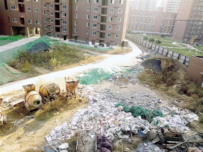 王女士介紹他們小區(qū)是清華·紫光園一期,與二期工地僅一墻之隔。8號(hào)樓從二樓起就能看到下面的工地,窗戶朝南原本是個(gè)好方向,冬天太陽(yáng)可以曬到屋里來(lái),還可以經(jīng)常開(kāi)窗通風(fēng)。但因樓下工地垃圾成堆,樓上的住戶都不敢輕易開(kāi)窗,經(jīng)常有各種惡臭飄進(jìn)房間。