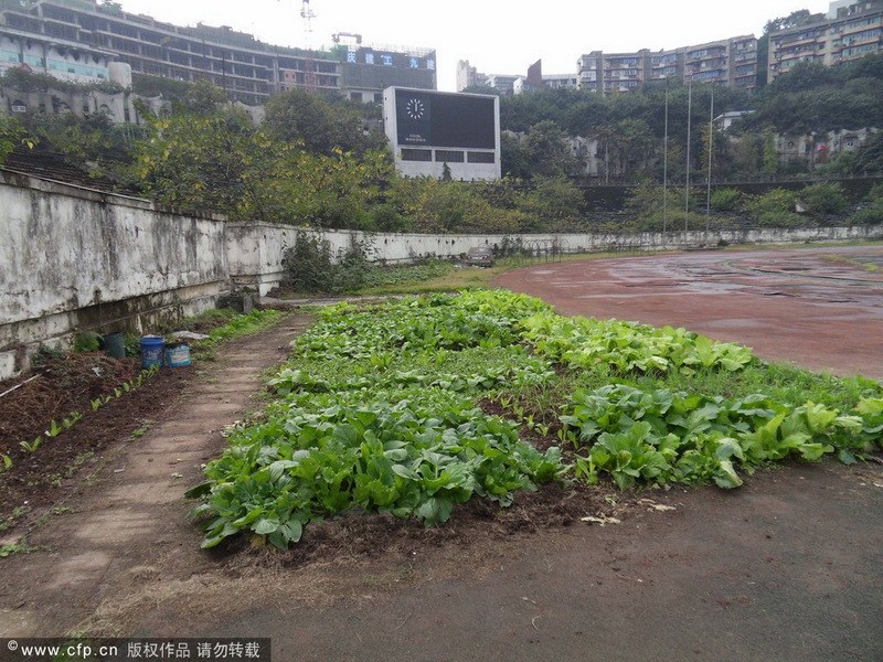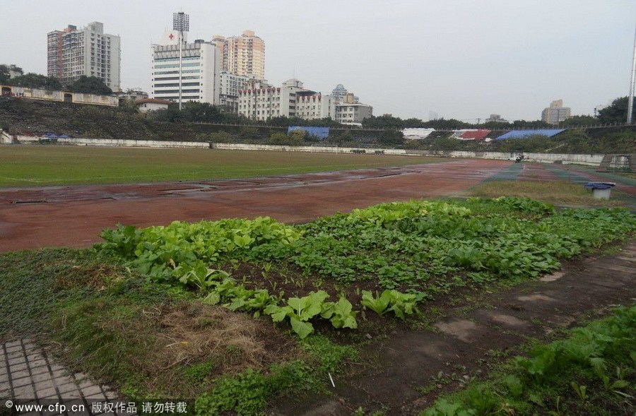 2012年11月26日,重慶,因改造修繕遲遲不動工,場地日常的維護和管理越來越困難,新中國第一座甲級體育場--大田灣體育場荒廢成菜地。重慶大田灣體育場,是新中國第一個甲級體育場,1951年在賀龍的主持下修建,占地面積12萬平方米,是建國初期重慶十大建筑之一。大田灣體育場曾經一直是重慶各足球俱樂部的主場,在中國足球甲A和中超時期,大田灣體育場先后經歷過前衛(wèi)寰島、重慶隆鑫、重慶力帆等足球隊,見證了重慶足球的輝煌與滄桑。