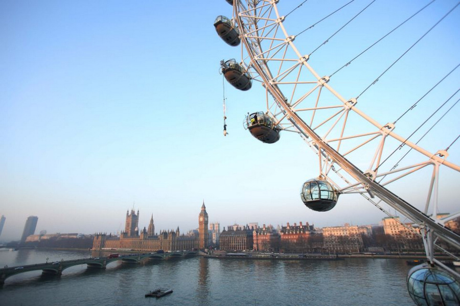喜愛魔術(shù)的人一定不會對逃生術(shù)感到陌生。然而,在幾十米的高空表演玩命逃生術(shù)的恐怕并不多見。據(jù)英國《每日郵報》3月5日報道,“倫敦眼”摩天輪上5日就上演了一幕玩命逃生術(shù):表演者將自己倒掛在摩天輪上,僅用了幾分鐘就擺脫了燃燒的繩子成功逃生。