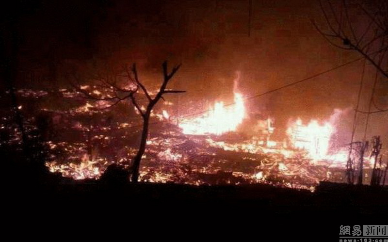 2014年1月26日,貴州省鎮(zhèn)遠縣報京鄉(xiāng)報京大寨發(fā)生火災。圖為火災現(xiàn)場。
