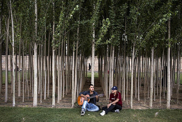 盡管照片中的人顯得很輕松,但對拍攝照片的Fatemi來說卻十分不易。這個攝影師花了數(shù)月才被允許進(jìn)入女性健身房、發(fā)廊等。很多人不愿意被拍到臉,怕被認(rèn)出來;很多人取消了預(yù)約,怕因此丟了工作。雖然存在著種種困難,F(xiàn)atemi還是取得了驚人的成果,為伊朗和外界拍攝了包羅萬象的精美照片。圖為私人搖滾音樂會。搖滾音樂在這里是被禁止的,所以這類表演一般都很隱秘的。