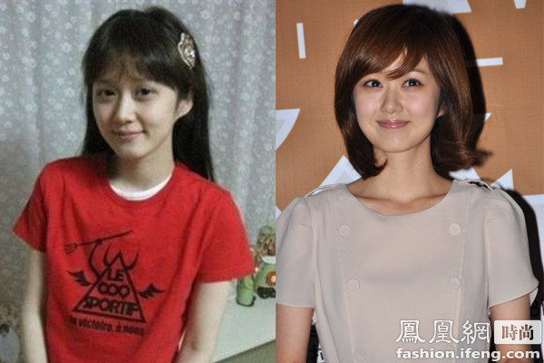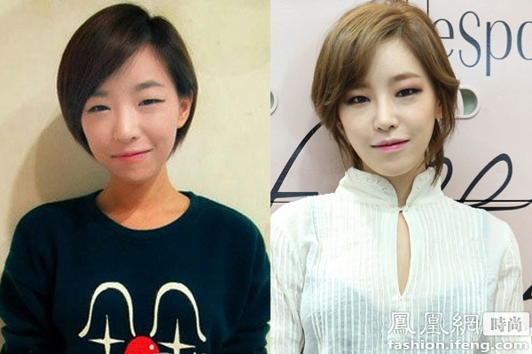 性感女神李孝利素顏也不會(huì)顯老,只是眼睛看著無神,化妝后加上空氣劉海的襯托一下子變年輕了。