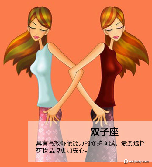 雙子座的女生往往喜好新鮮事物,她們有著很多小技巧小聰明,但卻不夠?qū)R?。喜歡嘗試何種護膚品和彩妝品,不求專一一件,只求豐富多樣,小白鼠似的不斷嘗試各種產(chǎn)品,因而也對肌膚造成了一定的傷害,容易誘發(fā)敏感。
