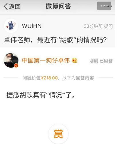 【卓偉回復(fù)網(wǎng)友胡歌近況;女友粉大呼心痛:誰這么幸運(yùn)?】今天不安分的卓偉在微博爆了胡歌的料!稱胡歌最近“有情況”!胡歌的真愛粉和廣大網(wǎng)友一樣氣炸了!總是靠著擦邊球掙錢,太不知所謂了!狗仔不需要職業(yè)操守嗎?