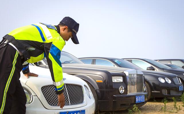 昨日,在沈陽市公安局沈河分局違章違法車輛停車場,勞斯萊斯、賓利等平時難得一見的豪車卻排成了排,它們皆因沒有正規(guī)“身份證”而被查扣。