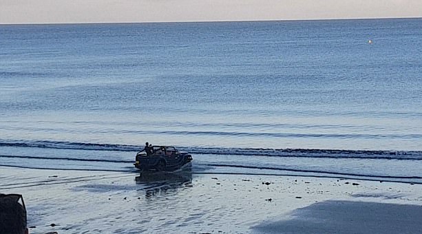 據(jù)《每日郵報(bào)》7月27日?qǐng)?bào)道,近日,在英國(guó)康沃爾郡一間名為“The Hidden Hut”的海邊餐廳里,數(shù)百名正在享用大餐的顧客目睹了一輛吉普車(chē)在海上化身成快艇高速行駛的全過(guò)程。” 據(jù)其他目擊者反映,當(dāng)吉普車(chē)在海面上像快艇一樣高速行駛的時(shí)候,全場(chǎng)驚呆了,接著爆發(fā)出歡呼聲和掌聲。