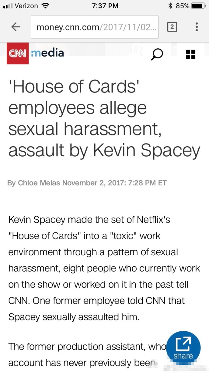 從砍劇到第六季停拍,凱文·史派西性騷擾事件給美劇《紙牌屋》帶來了不小的風(fēng)波。而據(jù)CNN今日?qǐng)?bào)道稱,目前有8名《紙牌屋》現(xiàn)員工及前員工向他們控訴凱文·史派西曾對(duì)自己實(shí)施性騷擾,其中一名甚至聲稱史派西性侵了他。這8名員工由于害怕講出這件事會(huì)對(duì)自己的事業(yè)產(chǎn)生影響,采用了匿名的方式向CNN揭發(fā)這件事情,他們稱史派西已經(jīng)是個(gè)慣犯,經(jīng)常對(duì)年輕男性有性騷擾行為,包括在對(duì)方不情愿的情況下觸摸、說一些粗魯?shù)难哉Z等。