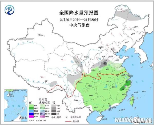 春運(yùn)返程高峰期間,還要關(guān)注天氣情況。20日至22日,江漢、江淮、江南等地將多陰雨天氣,其中江淮南部、江南等地的部分地區(qū)有中雨,局地大雨。23日夜間至24日,江漢、江南等地又有一次弱降水過(guò)程。