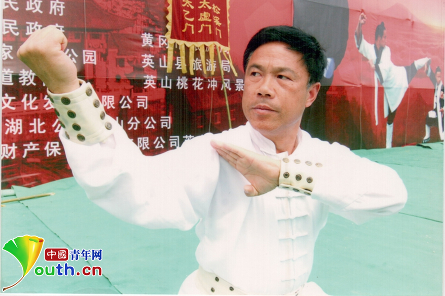 2007年5月在英山縣舉辦的第一屆“南武當(dāng)杯”國際武術(shù)節(jié)上,岳家拳傳承人張業(yè)金現(xiàn)場表演獻(xiàn)技。