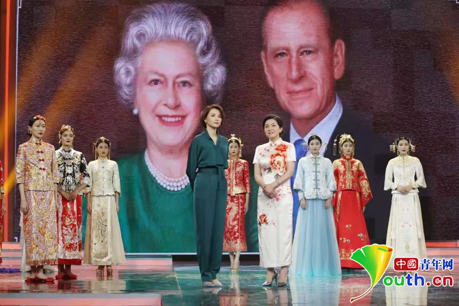 在CCTV《非遺公開課》節(jié)目中,大屏幕顯示的是姚建萍第二次為英國女王創(chuàng)作的肖像作品、國禮《歲月如歌》。