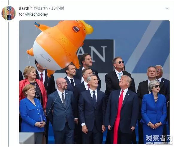該照片目前已經(jīng)被西方各大主流媒體使用,作為其報道北約峰會的頭圖,比如美國《新聞周刊》、《時代》等。