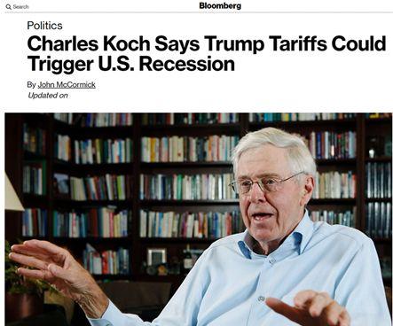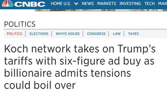 可隨著之后特朗普對中國等國發(fā)動貿(mào)易戰(zhàn)的行為,以及相關惡果的逐漸顯現(xiàn),科赫家族的最新表態(tài)也與今年1月的言論形成了鮮明的對比。