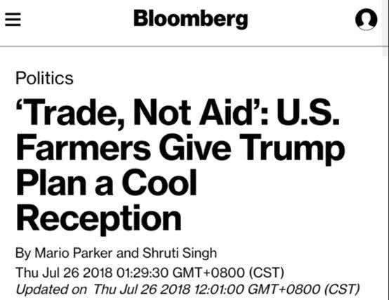 這個廣告片的名字叫“要貿(mào)易,不要補助”——即美國農(nóng)民不想要特朗普政府給他們的120億美元的補貼,他們想要的是恢復和中國等其他國家的貿(mào)易與市場。