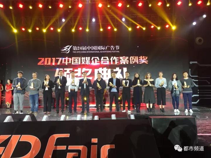 在2017中國廣告長城獎·廣告主獎之媒企合作案例獎頒獎現(xiàn)場,河南都市頻道榮獲6項營銷大獎。都市頻道團隊憑借廣告與節(jié)目的融合、專業(yè)的服務(wù)水準、勇于創(chuàng)新營銷策劃能力,獲得“中國長城獎2017年度金伙伴獎”。