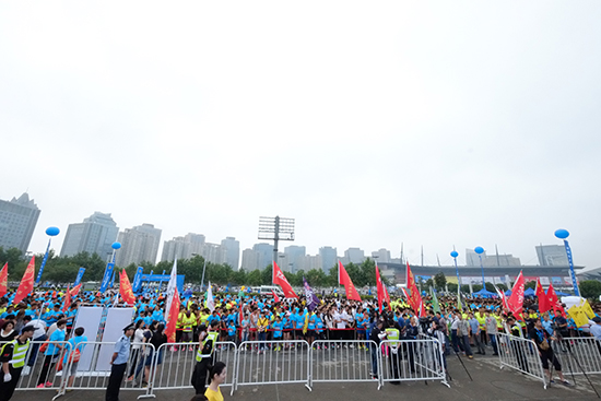 經過了半夜的狂風暴雨后,早上8點,鄭東新區(qū)的空氣格外清新!雖然活動9點開始,但此時,cbd文化廣場已經聚集了好幾千名參與者,他們有的是熱衷于環(huán)保的市民,有的是健身、跑步的愛好者,也有的學校、單位集體組織了方陣,提前趕到現場參加活動。